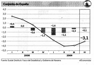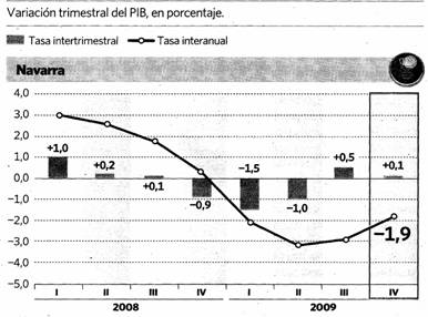 Hasta el club más modesto de fútbol sabe que, si acaba la primera parte de la liga en los últimos puestos, tiene que hacer cambios en la plantilla o en la dirección técnica, si quiere evitar el descenso. Si su presidente, ante la gravedad de la situación deportiva, asegura que no pasa nada, que en la segunda parte y con el mismo equipo y entrenador será el momento de la recuperación vigorosa que llevará al equipo a la zona alta de la tabla, hasta el más forofo de los aficionados pensará que les está tomando el pelo o que no tiene ni idea de este deporte. Si estas declaraciones las hiciera en una asamblea de socios entre el entusiasmo general, os garantizo que inmediatamente sería el tema simpático del día en todos los medios de comunicación, tanto como si, entre las medidas para resolver la crisis, aprueban las de cambiar la vestimenta a los jugadores, el comprar un nuevo autobús con vivos colores o hacer una rotonda en la zona deportiva. Sin embargo en la vida pública no me extrañaría que esto último pueda suceder, tal vez porque los ciudadanos no tienen tantos conocimientos sobre la gobernación como tienen sobre el fútbol o porque potentes medios de comunicación se han especializado en la manipulación de la información hasta extremos increíbles. Sólo cuando la ciudadanía caiga en la cuenta de que, entre los casos de corrupción, también se pueden incluir la aplicación de recursos públicos y la aprobación de privilegios legales en beneficio de intereses particulares y tengan, estas empresas, que vivir, como todas, de sus clientes, dirigirán sus líneas informativas a la defensa del bien común y no de los intereses políticos de los que administran el dinero de todos. En este momento, comprobarán que, más que inyectar en la sociedad, permanentemente, elementos de crispación, que se irán haciendo, cada vez, más intensos, alienantes y hasta peligrosos, para evitar que la gravedad y la responsabilidad de la crisis no tenga efectos electorales, es más honesto e inteligente colaborar en el diagnóstico y la búsqueda de soluciones positivas para que la sociedad no llegue a una situación de deterioro económico irreversible. Se lo agradecerá tanto la población como el futuro político de los intereses políticos que intentan, tan torpemente, proteger. La actual crisis no sólo ha puesto de manifiesto los defectos estructurales de nuestra economía sino, también, de buena parte de nuestros clásicos medios de información. En la economía, como en el deporte, también los resultados dependen de la gestión. Por eso, cuando me preguntan y cada vez más angustiadamente, sobre cuándo saldremos de la recesión, les ponía el ejemplo de Navarra. Desde comienzos del 2.009, en todas las comunidades autónomas se produjo una importante caída en la compra de automóviles, salvo en Navarra. En esta comunidad, habían aprobado un plan de ayuda para la adquisición de automóviles que había tenido tanto éxito que era la única que había conseguido tener un crecimiento positivo de ventas. Programa de ayudas que también había logrado potenciar el mercado de automóviles en los países en que se había aplicado y que, luego, probaríamos nosotros. En el periódico EL ECONOMISTA del 15 de febrero de 2010, se destacaba el hecho diferencial navarro en relación con el resto de España. Es la comunidad con menos tasa de paro (10,53% por el 18,83% de la media nacional) la que menos había reducido la recaudación pública en el 2009 (-4,6%, en España un -16,5% hasta noviembre) y la que se estaba recuperando mejor, ya que llevaba dos trimestres en crecimiento positivo (ver 1 y 2 gráficos). Se puede pensar que ello se debe a su estructura productiva diversificada y con alto componente industrial y al menor peso que tiene en ella la construcción residencial, pero si la comparamos con la otra economía tradicionalmente industrial como la catalana, veremos que su evolución tiene un enorme mérito. Cataluña presentaba, a finales del 2.009, una tasa de paro de un 16,5% y fue la segunda en mayor recesión 4,69% del PIB pb, sólo superada por Aragón, -4,87 (Fuente :CUADERNOS DE INFORMACIÓN ECONÓMICA nº 214 FUNCAS marzo del 2.010). Lo que me desconcierta es que, una comunidad con tanta capacidad para el debate sobre cualquier tema por nimio que sea, no se haya planteado esta regresión de resultados como su principal preocupación, cuando este comportamiento negativo viene repitiéndose durante demasiado tiempo.( 3 ) Como en cualquier empresa, debería ser objeto de revisión el funcionamiento de todos sus departamentos: la gerencia, la producción y la atención a la clientela, para investigar en donde está el origen del arraigo de tan malos resultados. Porque, el mantenimiento de una situación económica próspera, no sólo es la garantía del nivel de vida y de trabajo de sus ciudadanos, de la calidad de los servicios públicos y las infraestructuras, de su estabilidad social y política, sino también de la viabilidad de su sistema educativo y cultural, propio. Reducida la oferta pública de empleo, que ha sido tan generosa en los últimos tiempos, a mínimos, una sociedad que contempla, con indolencia y sin reacción, cómo se destruye su tejido empresarial y se amplía, con tanta fuerza, su tasa de paro, está trasladando a otros pueblos el futuro profesional de sus hijos y será entonces cuando comprueben la utilidad y la calidad de su formación. Pero, si analizamos el texto, comprobaremos que es en la gestión pública y social de la crisis y en la especial atención por la mejora de la calidad del sector productivo (ejm. en I+D un 1,92% de su PIB, por un 1,35% del PIB de media nacional), en donde encontraremos las razones de estos datos económicos tan positivos, de ahí entresacamos lo siguiente: El Consejero de Economía, Álvaro Miranda, explica que el milagro navarro va más allá de las fortalezas propias de la economía Navarra: Esto no es una ca