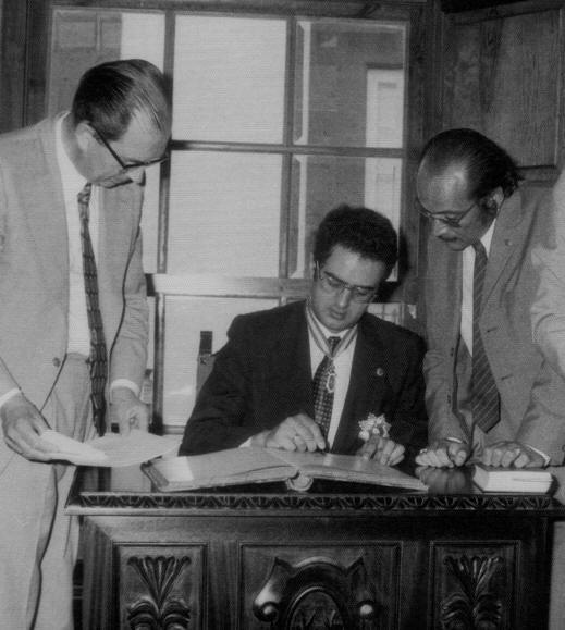 | PEDRO ÁVILA NAVARRO: | PREMIO * NOTARIOS Y REGISTRADORES * 2014 |  | | RAZONES PARA LA CONCESIÓN: El Equipo de Redacción de la web, tras amplias deliberaciones, ha acordado otorgar el Premio Notarios y Registradores, en su III Edición, al Notario y Registrador de la Propiedad don Pedro Ávila Navarro... por su experiencia dilatada en el desempeño de las dos profesiones, su vocación divulgadora de la práctica del Derecho, su condición de humanista en continua lucha por el uso de un lenguaje puro y sencillo y por su carácter conciliador, con una vida personal y familiar que entrelaza todo el territorio nacional. El Presidente del Comité: don José Ángel García-Valdecasas. | APUNTES BIOGRÁFICOS | 1.- SUS ORÍGENES: Pedro Ávila Navarro nació en Granada el 13 de agosto de 1945, cuando había comenzado a pasar lo más crudo de la postguerra, hijo de un histórico del Notariado, don Pedro Ávila Álvarez, siempre recordado por su magnífico Tratado de Derecho Notarial, fuente de inspiración y estudio para varias generaciones de notarios y registradores. Su madre fue Concepción Navarro Fenech. El matrimonio tuvo una notable descendencia, nada menos que doce hijos, lo que no era tan inusual entonces. Un tremendo reto para los padres y una bendición para los hijos que pueden contar con tantos compañeros de vida. | Pedro Ávila Álvarez y Concepción Navarro Fenech, padres de Pedro Ávila Navarro. |  | 2.- LA NIÑEZ: De todos ellos, Pedro es el mayor, por lo que tuvo el honor de heredar no sólo el apellido sino también el nombre de pila de su padre. En correspondencia, debió también asumir su cuota de responsabilidad respecto de los hermanos que fueron viniendo para servir de ayuda a sus padres y de ejemplo desde su autoridad de primogénito. Pasó parte de su infancia en Castellón –desde los 6 hasta los 10 años–, ciudad a la que su padre concursó, para volver de nuevo a Granada, |  | 3.- BACHILLER Y UNIVERSIDAD: En Granada permaneció por más de diez años, mientras cursaba estudios en los Hermanos Maristas primero y luego en la Facultad de Derecho; allí recibió la docencia de catedráticos como Carrillo en Internacional, Murillo Ferrol en Político, Ossorio Morales en Civil... Tenía prisa por ir avanzando en sus estudios, y aprobó la mayor parte de las asignaturas de la carrera en tres años. Se reservó dos huesos duros, Civil y Mercantil para compaginarlos con las Oposiciones, pero como las preparó atendiendo al temario de éstas, los resultados académicos fueron magníficos. | | 4.- LA MILI: En medio de la carrera hizo la mili, de soldado raso, en el campamento de Viator, Almería. Recuerda un episodio que pudo terminar con su vida y posiblemente también con la vida de muchos lectores de este escrito: Durante una clase práctica en el campo, cerca del mar, se vio cómo dos aviones chocaban y se incendiaban en el aire y cómo caían unos objetos a consecuencia del impacto. Decía el teniente: –Eso serán bengalas de señales… Pero no fue muy acertado en su diagnóstico. ¡Eran las bombas de Palomares! | | |  | 5.- UNA NUEVA FAMILIA: Conoció a Cristina, su mujer –genuinamente cordobesa, como la Córdoba de Machado, romana y mora, Córdoba callada–, en primero de carrera, mientras ella hacía PREU. Tuvieron un largo noviazgo, pues no hubo más remedio que esperar para casarse hasta conseguir medios propios de vida, a caballo entre las oposiciones de Registros y de Notarías. Y comenzaron una nueva vida, en lo profesional y lo personal, bajo el clima bonancible de Canarias, destinado en San Sebastián de la Gomera. Fueron llegando los hijos –cuatro varones– cada uno en un destino: Pedro en La Gomera; Javier, en San Sebastián; Luis en Toro, y Miguel, el más joven, en Logroño. Tres abogados y un procurador, que residen en Cataluña. |  | 6.- OPOSICIONES: Pero volvamos a sus tiempos de opositor. Comenzó a preparar con Telesforo Sánchez Huet en Granada, Al trasladarse su padre a Madrid, siguió la preparación directamente con él. Todo un lujo. En este duro peregrinaje, tuvo de todo: retirada en Registros, suspenso en Notarías, aprobado en Registros en el año 1972, aprobado en Notarías al año siguiente, y lo mismo en la Oposición Restringida de 1982. Siempre aconseja a los opositores que han logrado sacar una de las dos oposiciones que, si no se encuentran demasiado exhaustos o quemados, vayan a por la otra con un poco de esfuerzo adicional. |  |  Pedro saluda a S. M. el Rey en Toro (Zamora) | 7.- DESTINOS: A lo largo de su peregrinaje por toda la geografía española sirvió: -En Huete (Cuenca), como registrador. –En San Sebastián de la Gomera, como notario. –En Rentería (Guipúzcoa), como notario, sustituyendo a Juan María Araluce hasta su lamentable asesinato terrorista. –En Villarrubia de Santiago (Toledo), como notario. –En Toro (Zamora), como registrador. –En Haro (La Rioja), como registrador. –En Ourense, como notario. –En Barcelona como notario. –En Barcelona y Badalona, como registrador. –En Girona, como registrador. –Estuvo excedente durante dos años para realizar estudios y publicaciones. –Y actualmente es registrador mercantil de Madrid. | | 8.- NOTARIO: Como notario, siempre intentó ser un artesano del oficio, redactor y pulidor de textos, dando forma, legal y gramatical, a las necesidades y voluntades de los ciudadanos que se acercaban a su notaría. Cuenta una simpática anécdota que le ocurrió siendo notario de Barcelona. Una joven solicitó la autorización de una escritura de reconocimiento de filiación por parte de su pareja de hecho, que estaba en la cárcel Modelo; ella estaba embarazada y ambos querían que el varón reconociera al hijo que ya tenían antes de que naciera el segundo vástago, para que constaran por ese orden en el libro de familia. Se presentó en la cárcel acompañado de la solicitante, que iba ilusionada por ver a su amado. El funcionario solo dejaba pasar al notario,
