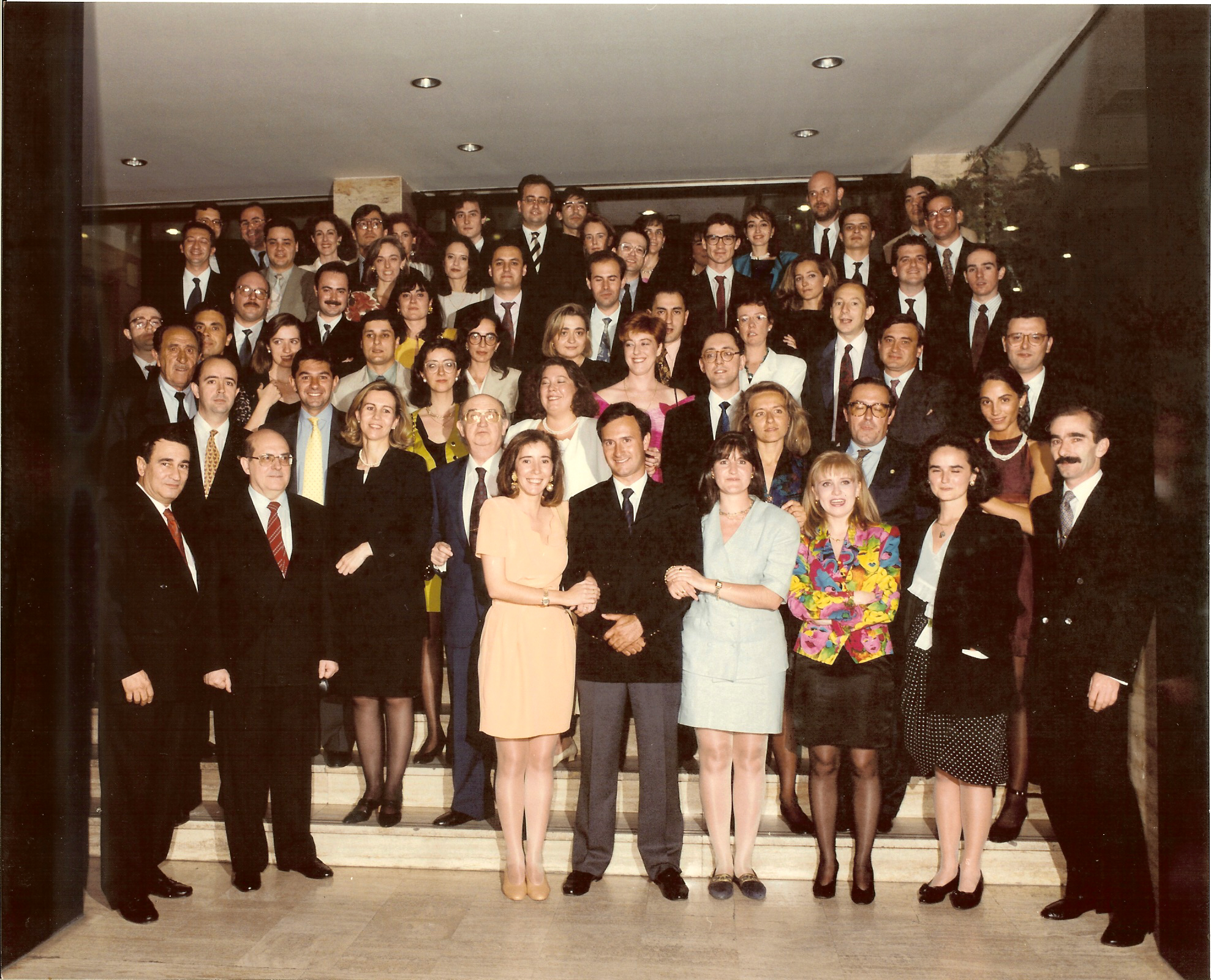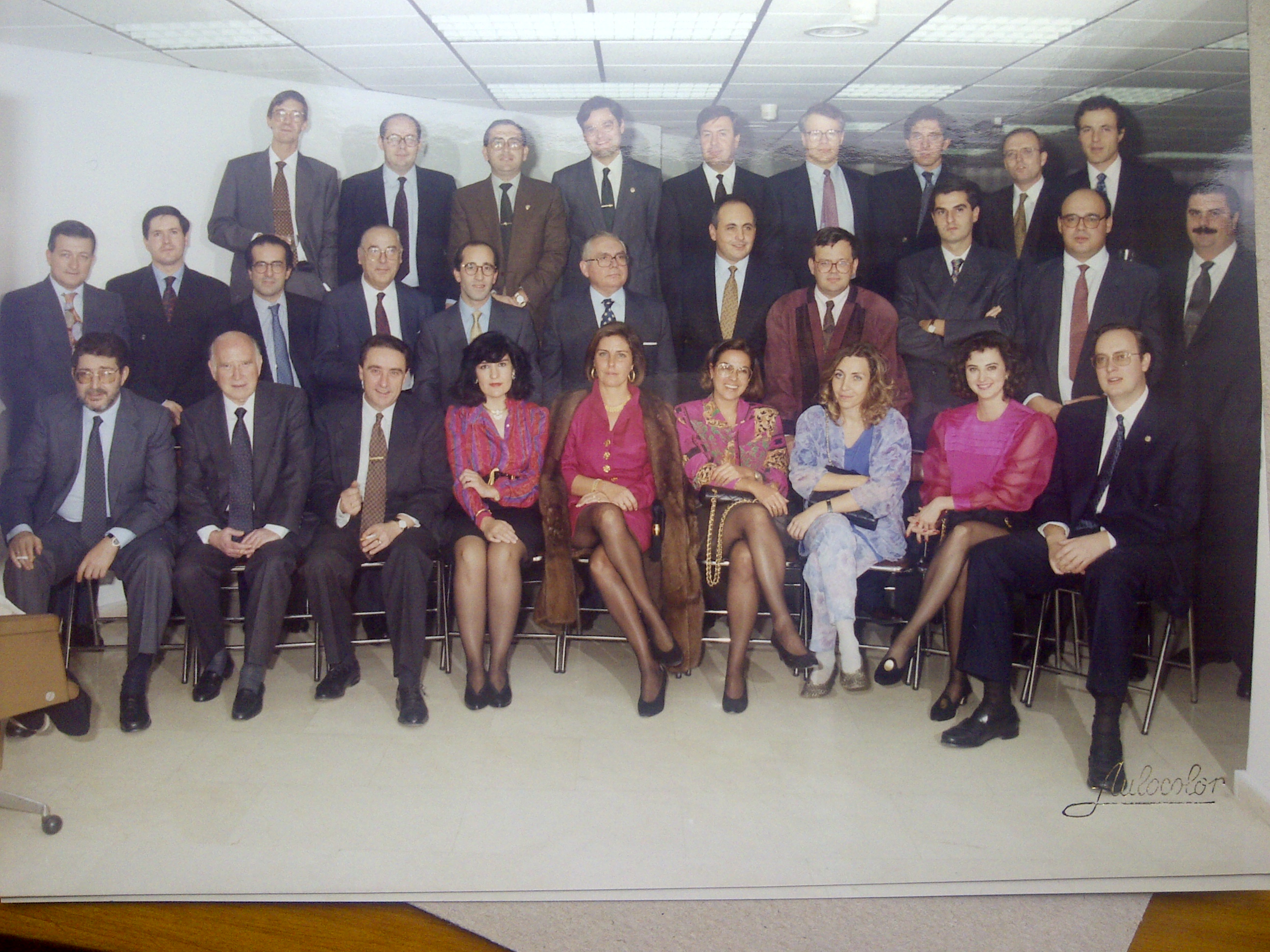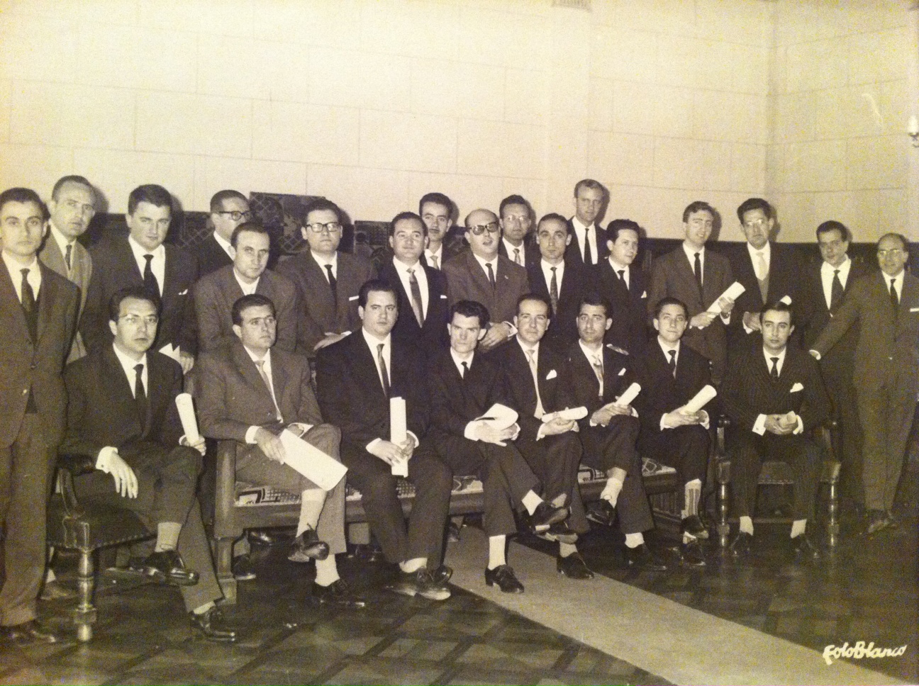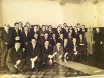 Detalles de la Promoción de 1935: Enviado por hermanos Misas Barba: Promoción de 20 de Septiembre de 1935 NOTARIAS. ¿VALLADOLID? Por Orden de Antigüedad (creo que faltan algunos, en la foto hay 25) D. Julián Dávila García Don Francisco Virgili Sorribes Don Juan Arroyo Pucheu Don Maximino Miyar y Miyar Don Julio Albi Agero Don Santiago Morar Martínez Don José Arenales Aragón Don Hipólito Sánchez Velasco Don Pedro Sols García Don Julián Manteca Alonso Don Adolfo Aguirre Calleja Don Gaspar Ripoll Gracián Don Juan Zúñiga Galindo Don Ramón Aroca García Don Luis Avilés Cucurella Don Manuel Misas Benavides Don Roberto García Isidro Don Virgilio Rey Amaya Don Juan Escobar de Acha Don Víctor Aguado Zaragoza Los notarios de esa promoción son las que más escribieron sobre la naturaleza jurídica de la legítima. Ver La legítima en el Código Civil, por Alfredo Garcia-Bernardo landeta. Publicado por Colegios Notariales de España. El del circulo es Manuel Misas Benavides, padre del Notario José Manuel Misas Barba (hoy Notario jubilado) y de Javier Misas Barba, Notario de Málaga, padre éste último de de Javier Misas Tomas, Registrador de Ibiza. Este último es además bisnieto de José Barba y Uriscar de Aldaca nacido el 27/1/1860 que ingresó en Chinchilla, y desempeñando el cargo de Registrador en Castropol, Cogolludo, Villadiego, La Bañeza, Saldaña, Carrión de los Condes, Coín, La Rambla, Cabra, Mota del Marqués, Tafalla, Palencia y Villalón de Campos , y tataranieto de Mariano Barba Lopez , fecha de nombramiento como Registrador 19/12/1861 por Cervera del Río Pisuerga, habiendo también desempeñado el cargo de Registrador de Astorga, Medinaceli, Toro, Frechilla y Madrid (Occidente) Se publican dos fotos, una con el Tribunal y otra sin él. De la carta enviada por Miguel Prieto, junto una foto más moderna de aniversario, entresacamos un párrafo: Entre los "comparecientes" descubro a Antonio Deltoro, Antonio Pérez Sanz, Ramón Alonso, Luis Santiago Gil Carnicer y a mi padre José Prieto García....tal vez también a Roberto Follía...Manuel Andrino....