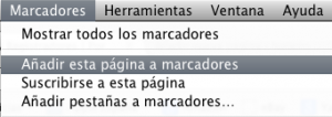 buscar en el menú principal la opción de Marcadores. Tras desplegar la pestaña, sólo tienes que pulsar en “agregar a marcadores” para que la página quede guardada en tus favoritos. -