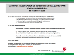 11-11.45 h.: Presentación del Centro de Investigación de Derecho Registral (CIDRE-UAM)