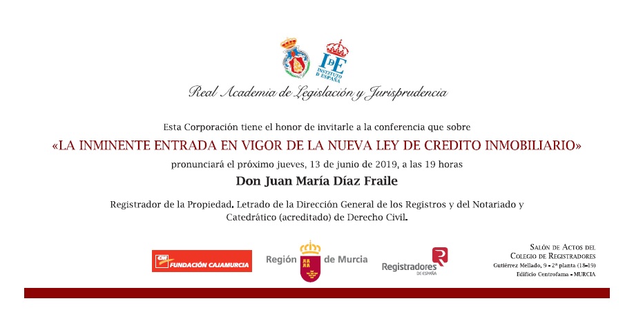 Lugar: SALÓN DE ACTOS DEL COLEGIO DE REGISTRADORES. Gutiérrez Mellado, 9 – 2ª planta (18-19) Edificio Centrofama – MURCIA