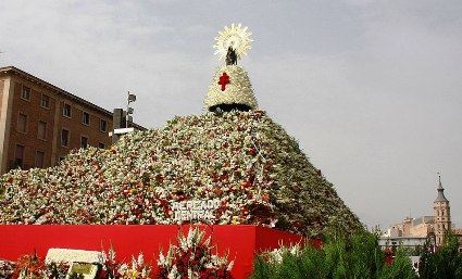 Ofrenda florar a la Virgen del Pilar en Zaragoza el 12 de octubre.