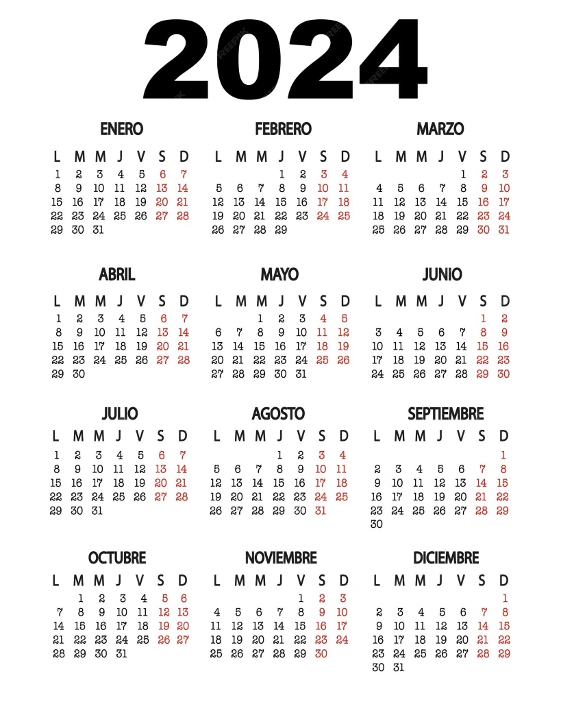 CALENDARIO DÍAS INHÁBILES 2024