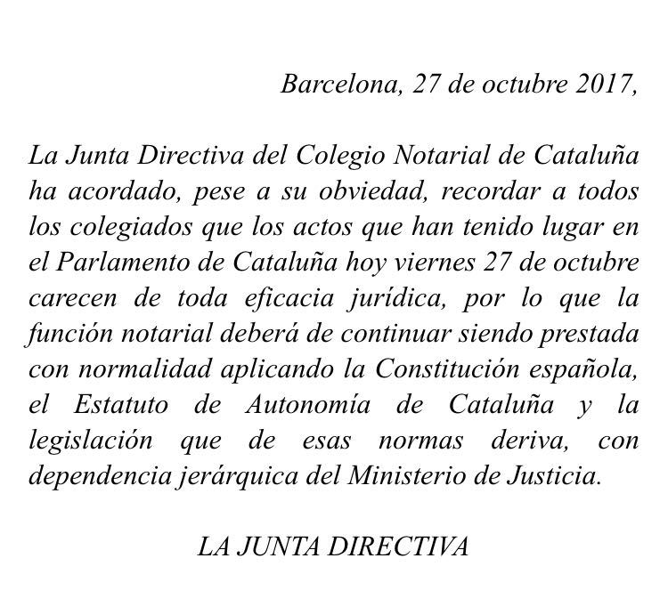 COMUNICADO DE LA JUNTA DIRECTIVA DEL COLEGIO NOTARIAL DE CATALUÑA: