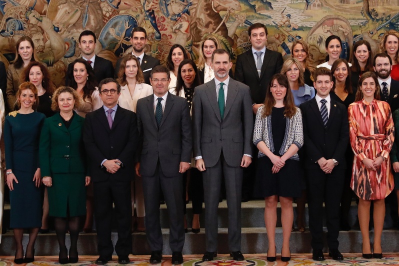 S.M. el Rey ha recibido en el Palacio de La Zarzuela, el pasado 28 de febrero de 2018 a la última Promoción de Registradores de la Propiedad, Mercantiles y de Bienes Muebles, lo que ya ha convertido en tradición -igual que con los notarios y otros cuerpos de funcionarios- desde el tiempo en que era Príncipe de Asturias.