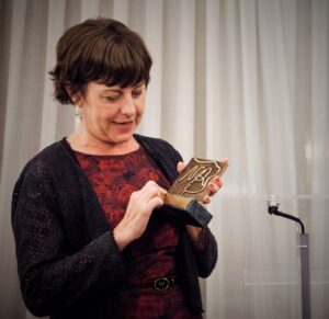- Inmaculada Espiñeira, Presidenta del Comité con el bajorrelieve del Premio