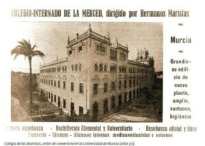 En Murcia, todavía como párvulo, fue al Colegio del Buen Pastor, que regían las hermanas Quirós. Para la educación primaria, le matricularon sus padres en el Colegio La Merced, de los Hermanos Maristas, primero en lo que llamaban “La Sucursal”, que estaba en la calle Acisclo Díaz donde hizo hasta el ingreso de bachillerato y, después, en el Colegio del Paseo del Malecón en el que cursó seis años del bachillerato.