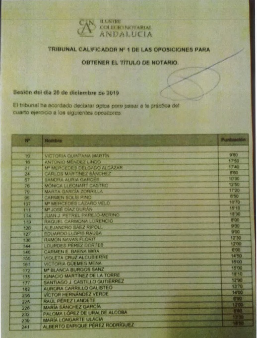 PAGINA DE LA OPOSICIÓN EN EL COLEGIO NOTARIAL DE ANDALUCÍA
