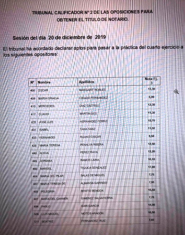NOTARÍAS: RESULTADOS TERCER EJERCICIO