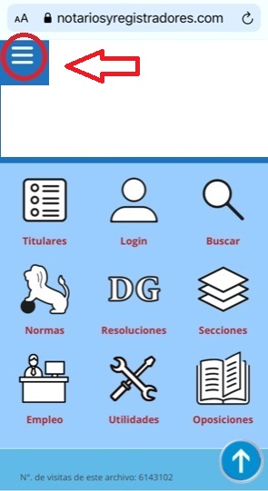 - Las tres rayas: queremos llamar la atención especialmente sobre el símbolo de tres rayas que hay en la parte superior izquierda, pues, a través de él, se accede a un menú muy completo que recoge prácticamente todo el contenido de la web. En la imagen se indica dónde está situado el símbolo:
