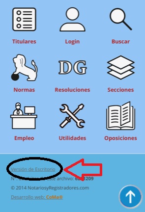 Si se quiere usar la versión de escritorio con las tres columnas también es posible, pinchando en el enlace que aparece en la portada móvil, abajo, en la zona de azul oscuro, según se remarca en la imagen: