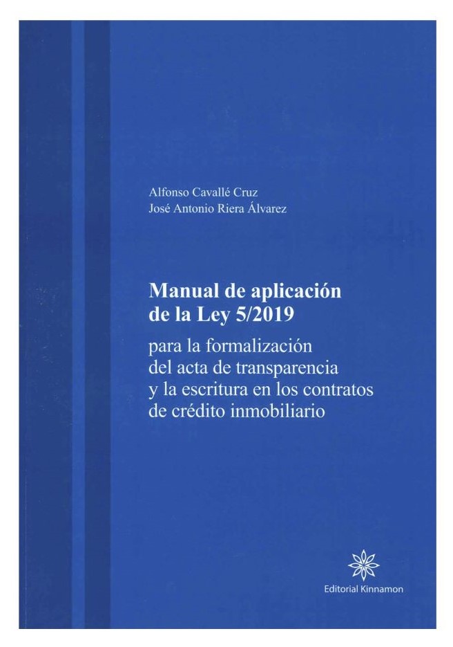 El presente libro pretende ser un manual de primeros auxilios o prontuario para notarios, entidades financieras y otros profesionales que trabajan el día a día de la formalización de los contratos sujetos a la Ley 5/2019 de 15 de marzo, reguladora de los contratos de crédito inmobiliario.