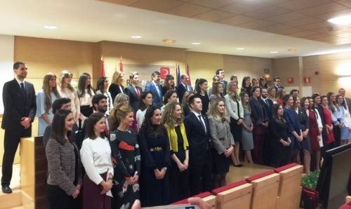 El Ministro cerró el acto, como acostumbra, de pie y con un discurso expresado casi de memoria, remarcando la satisfacción de la familia por ver a sus hijos cumplir su difícil meta, alegría que él mismo ha sentido en primera persona muy recientemente. Y recordó que la palabra «éxito» sólo está delante de «trabajo» en el Diccionario de la Real Academia.