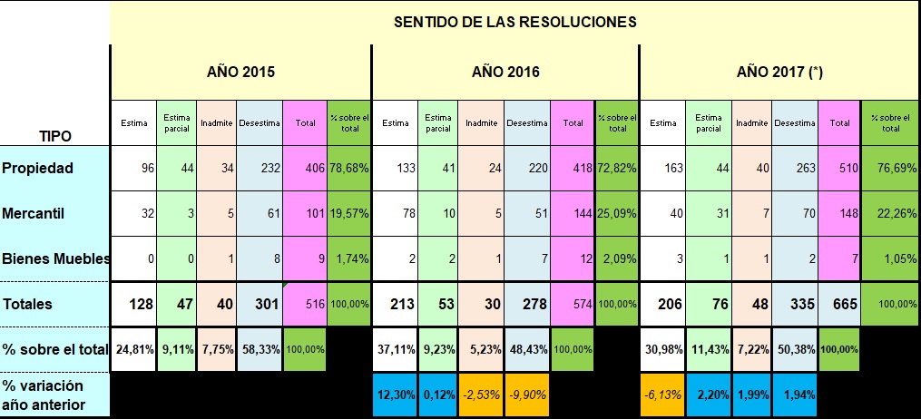 - Las probabilidades mayores de estimación se encuentran en Mercantil, seguido de Propiedad y, en último lugar, Bienes Muebles.