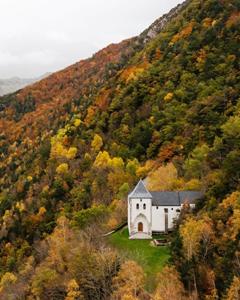 La ermita de Santa Elena en otoño. Biescas (Huesca)