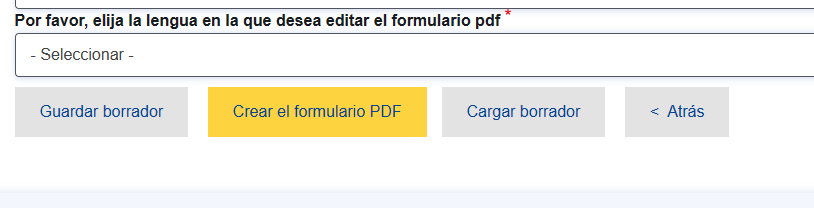 En este punto es importante saber que el formulario PDF se crea en una pantalla nueva (o, según como tengamos configurado el programa, quedará pendiente de que lo descarguemos) y que podemos crear ese mismo formulario desde la misma página final del mismo eligiendo otro idioma en la última pestaña y pinchando de nuevo en “crear formulario”. Es el mismo Anexo en otro idioma.