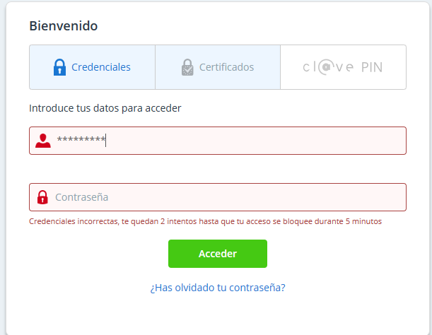 Hay que introducirla para acceder al portal y, tras tres intentos fallidos, el usuario queda bloqueado por 5 minutos.