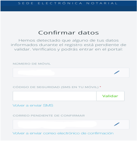 Una vez enviado el formulario se recibirá: a) en el teléfono móvil un sms para verificar el teléfono móvil (introduciendo el código de activación que recibirá por sms) y b) en el correo electrónico proporcionado un e-mail para verificar la dirección de correo electrónico (accediendo al mismo y validándolo).