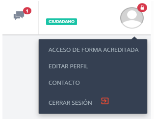 Si estamos en un ordenador, en la parte de arriba a la derecha, y si estamos en la aplicación móvil, en la parte de arriba a la izquierda, aparecerá nuestro nombre y “ciudadano”. Haciendo clic sobre nuestro nombre aparece un desplegable.