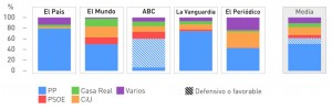 “EL PAIS, dedica a la corrupción de media por día un 23%, con la siguiente distribución: un 80% para el PP y el resto se reparte un 20%. El rojo del PSOE, no aparece por ningún lado.