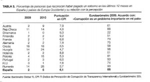 Sin embargo estos datos contrastan fuertemente con los índices de victimización. Sólo el 8%, el mismo porcentaje que el del conjunto de europeos, responden afirmativamente al ser preguntados sobre si han vivido o han sido testigos de un caso de corrupción”.