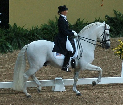 Caballo_andaluz Rociero-XV montado por Kristina Harrison-Naness. Por nickage en Wikipedia