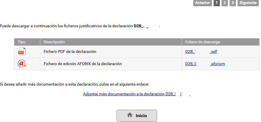 Si hubiera sucedido algún problema durante la tramitación de la declaración, la columna ‘Mensaje de error’ mostrará una descripción del mismo. En ese caso, de esa declaración no podrá descargarse el fichero PDF justificativo.