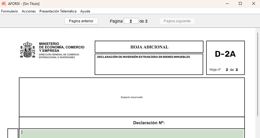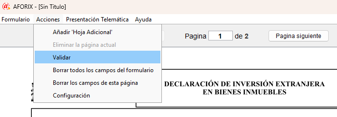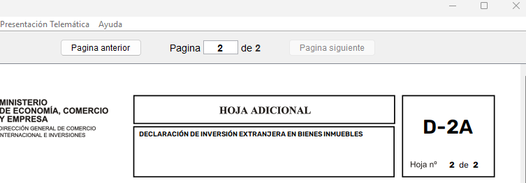 Y en el formulario habrá 2 páginas en lugar de 1. Para pasar de una página a la otra hay dos pestañas “página anterior” y “página siguiente”, Cuidado porque si pinchamos en la X de la parte superior derecha cerraremos el formulario.