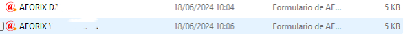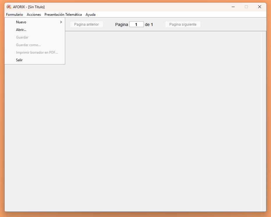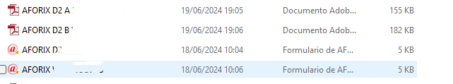 Se podrá acceder al formulario más adelante, desde el propio programa AFORIX, en la pestaña “Formulario” y “abrir” buscando la carpeta donde lo tenemos guardado; o haciendo doble clic en el propio formulario guardado en el expediente. El formulario guardado tendrá este aspecto: