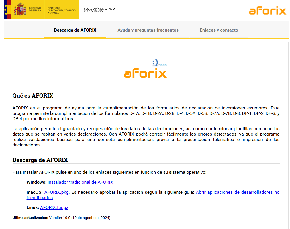 Al pinchar en “descargar” aparece una pantalla explicativa de lo que es AFORIX y los enlaces en los que debemos pinchar según cual sea nuestro sistema operativo (que será, normalmente, Windows).