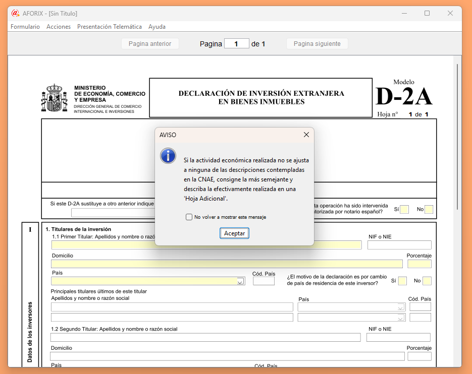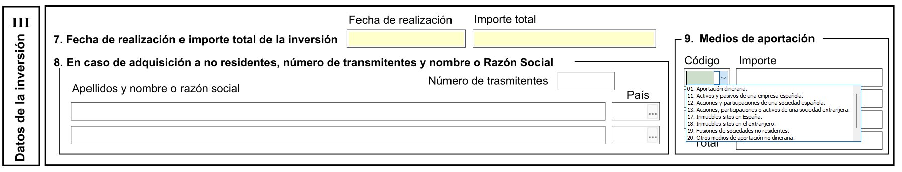 No puede utilizarse para consignar todos los titulares de la inversión aprovechando una sola declaración o un solo modelo. Es farragoso, pero hay que rellenar y presentar un modelo para cada sujeto titular de inversión o desinversión (aunque se trate de un único inmueble o sociedad).