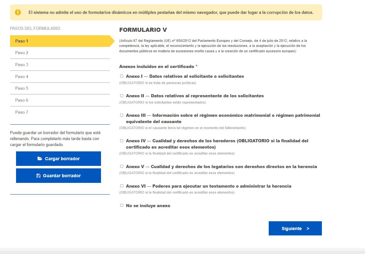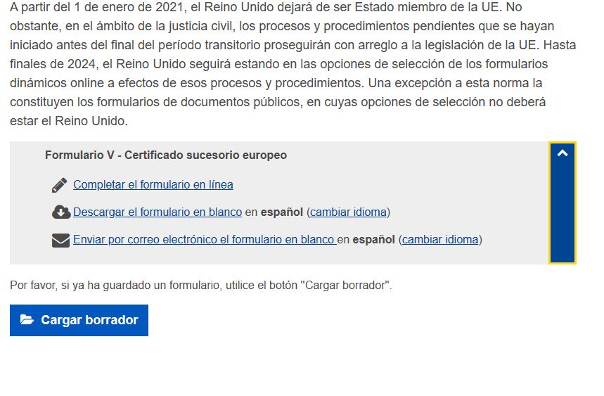 (Formulario Sucesorio Europeo y Anexos en blanco)