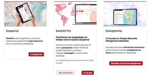 Se acede desde aquí (geoportal registradores), donde aparecen las tres aplicaciones: GEOPORTAL, GEOEDIT PRO y EMERGENCIAS.