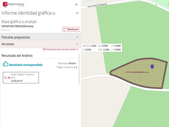 El informe de identidad gráfica registral puede ser de identidad correspondida o no. Y se puede descargar en PDF.