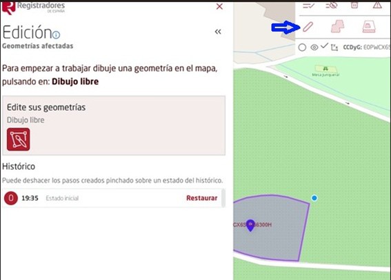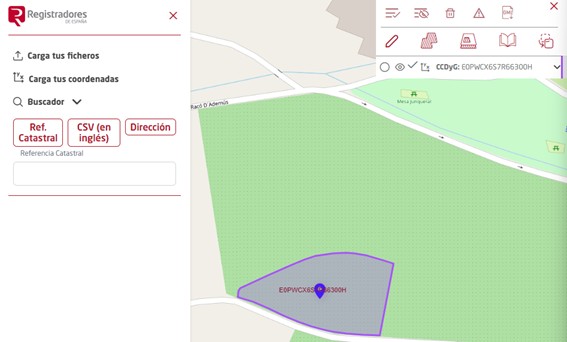 Donde se pueden ver las fincas con georreferenciación ya inscrita (no se pueden ver las que están pendientes o simplemente presentadas). No se verán los datos de la inscripción, para eso hay que acudir a GEOPORTAL. Esta herramienta es para consultar y editar nuestra información, tras compararla con catastro o con las georreferenciaciones ya inscritas.