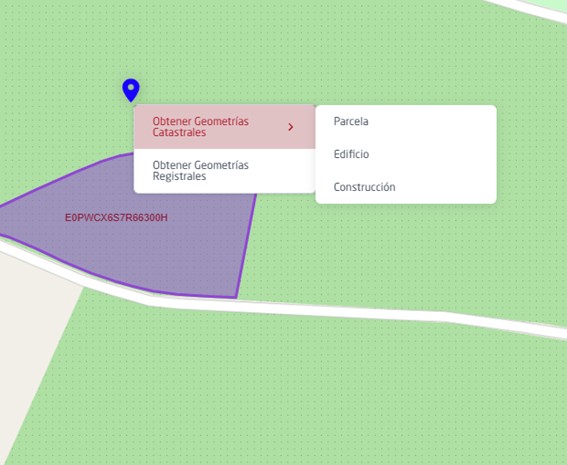 TERCER PASO.- En el plano, haciendo clic sobre la finca que nos interesa, sea la nuestra u otra, (para seleccionarla) y después clicando con el botón derecho del ratón sobre ella, se abre un desplegable que permite verificar si la finca tiene inscrita la georreferenciación o no la tiene inscrita y también permite obtener las geometrías catastrales. Hay que tener en cuenta que en GEOEDIT PRO solo constan las georreferenciaciones inscritas, no aparecen las georreferenciaciones pendientes, para eso hay que acudir al GEOPORTAL.