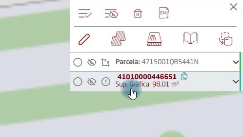 Se selecciona en la pestaña de “Capas” la parcela sobe la que se quiere obtener el informe de identidad gráfica registral y