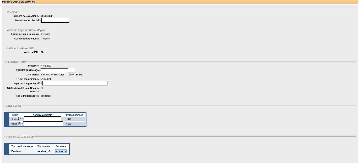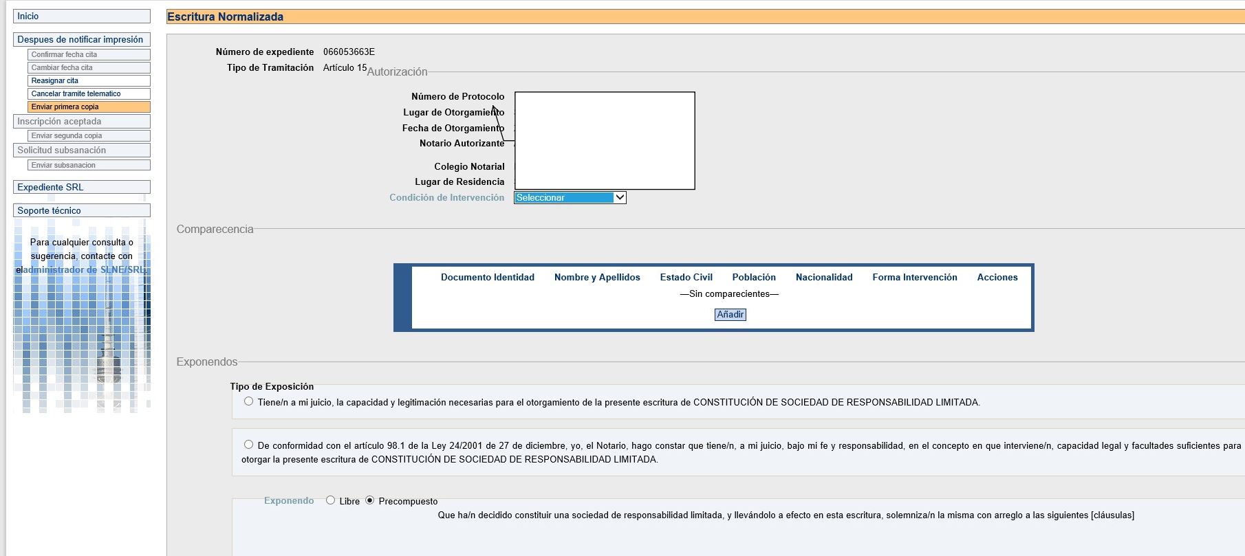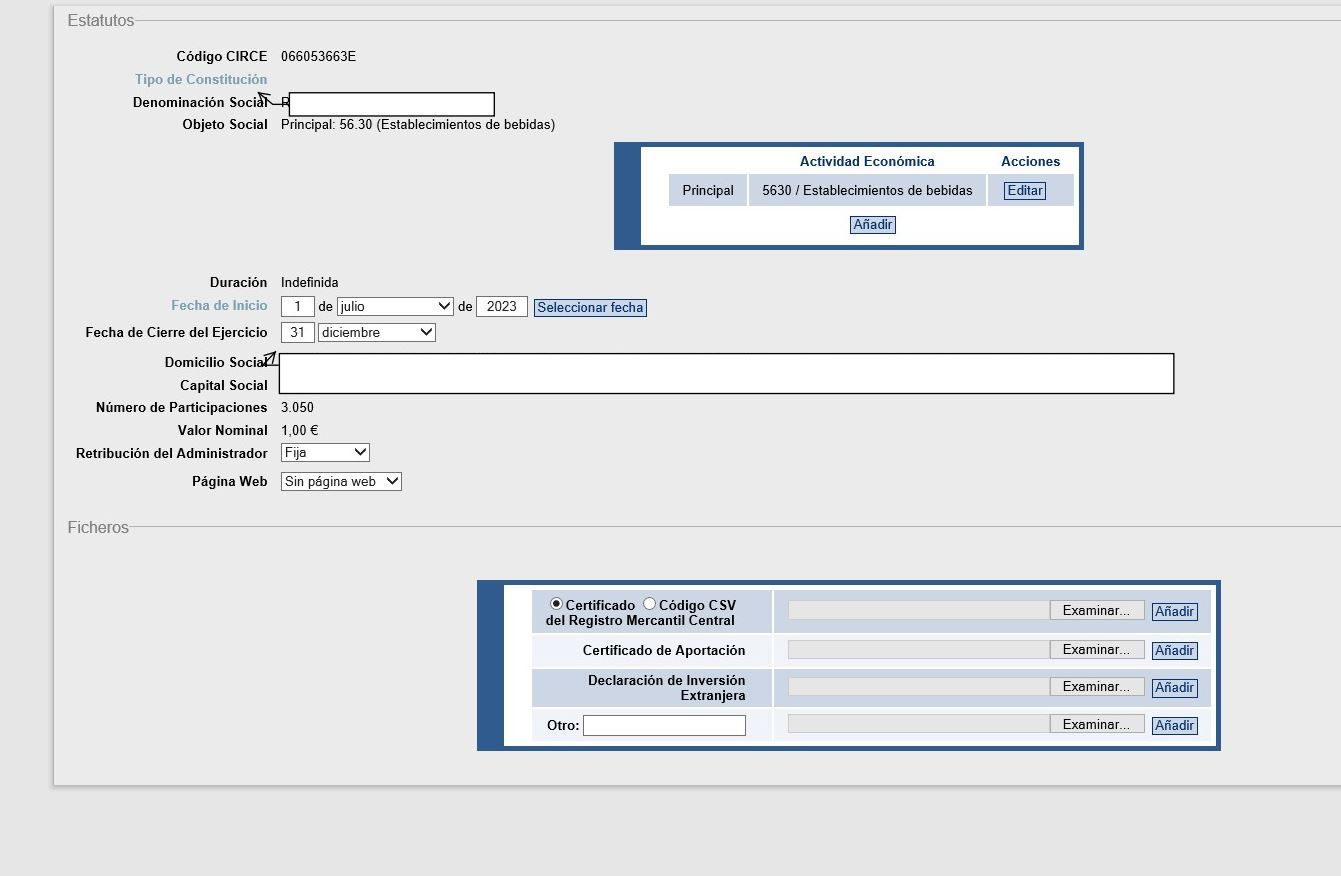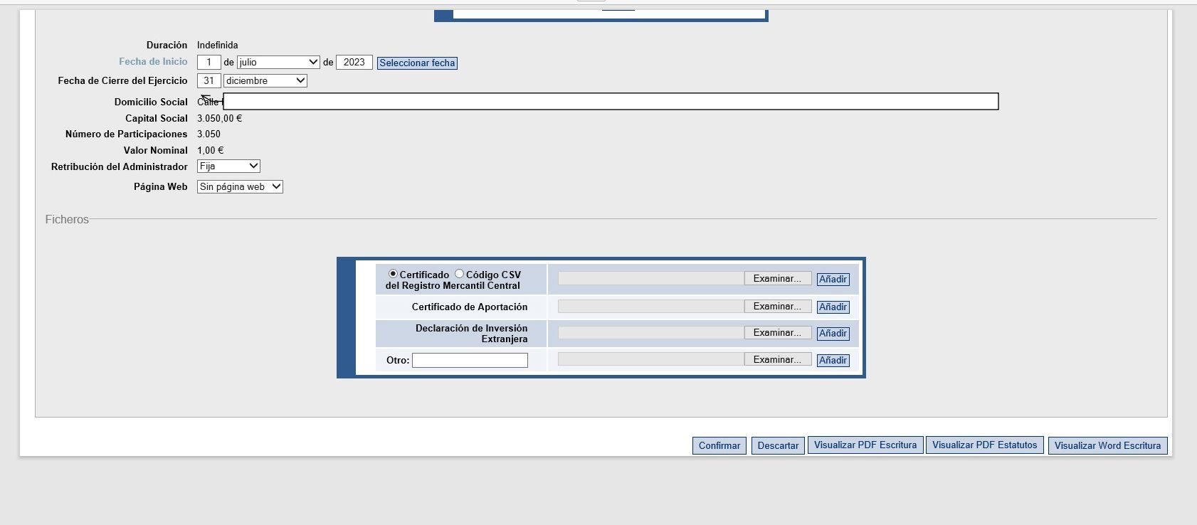 En la notaría hay que confirmar esos campos variables (socios, capital social, objeto, domicilio) y completarlos, básicamente seleccionando la forma de administración, la fecha en que se firma y el número de protocolo, por lo que hasta el último momento no es posible completar todos los datos.