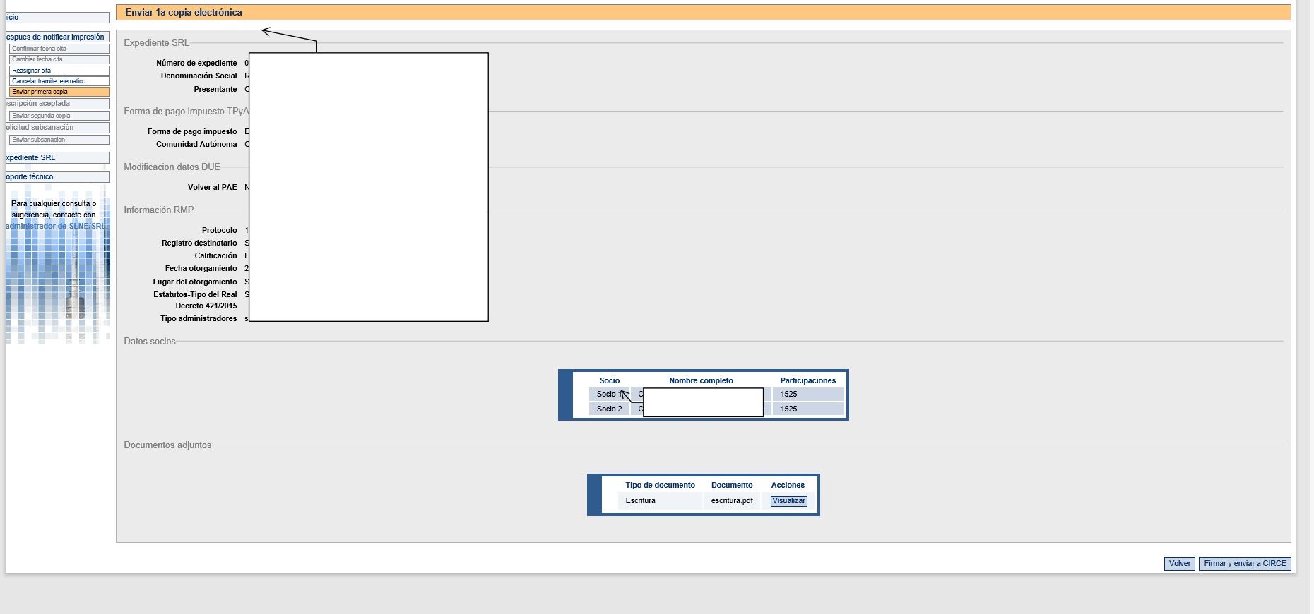 11 .- El notario tiene que adicionar a la matriz como documentos unidos los documentos anteriores y emitir una segunda copia electrónica y enviarla al sistema CIRCE para confirmar la constitución de la sociedad y que se genere el NIF definitivo.