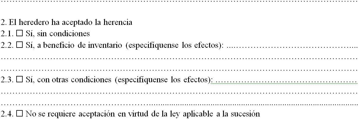 Los mencionados herederos han aceptado la herencia de don/doña* mediante escritura otorgada el día *, número * de protocolo, que me exhiben y devuelvo, por lo que de conformidad con el derecho sucesorio español han adquirido de forma definitiva la condición de herederos.