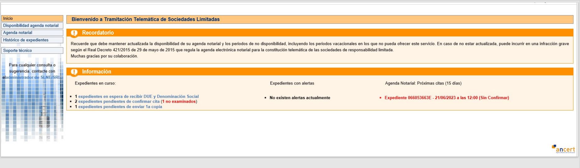 1.- ACTIVAR LA AGENDA NOTARIAL PARA CIRCE (si no lo estuviera)