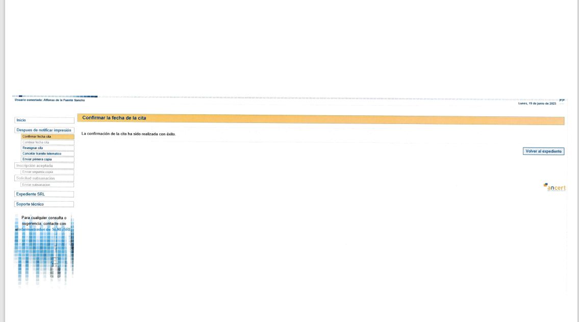 A continuación el sistema nos informa de que la cita HA SIDO CONFIRMADA.